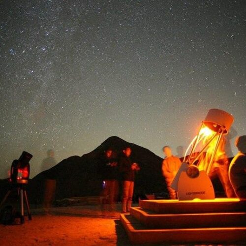 Der Höhepunkt der Tour ist die professionelle Sternenbeobachtung. Ein erfahrener Guide erklärt dir den Nachthimmel und zeigt dir Planeten, Sternbilder und die Milchstraße. Dank der klaren Luft und der Abwesenheit von Lichtverschmutzung bietet die Wüste ideale Bedingungen für astronomische Beobachtungen.